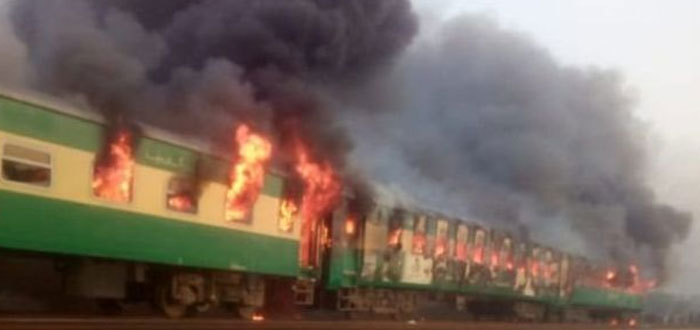 পাকিস্তানে দ্রুত গতির একটা ট্রেনে আগুন লেগে মারা গেছেন অন্তত ৭৩ জন ও আহত হয় অনেকে। হতাহতদের লিয়াকতপুরের ডিএইচকিউ হাসপাতালে পাঠানো হয়েছে। ট্রেনটি করাচি থেকে রাওয়ালপিন্ডি যাচ্ছিল।