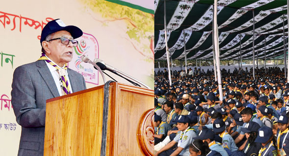 রাষ্ট্রপতি বলেন, ‘স্কাউটিং লেখাপড়ার পাশাপাশি প্রশিক্ষণের মাধ্যমে একজনকে সুনাগরিক হতে সহায়তা করে। দেশ সেবা ও মানব কল্যাণে স্কাউটিংকে কাজে লাগাতে হবে।’ গাজীপুরের মৌচাকে জাতীয় স্কাউট প্রশিক্ষণ কেন্দ্রে ‘৯ম জাতীয় কাব ক্যাম্পুরী-২০২০’ এর উদ্বোধনী অনুষ্ঠানে তিনি এ কথা বলেন।