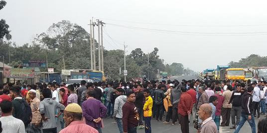 আজ শনিবার দুপুরে ঢাকা-টাঙ্গাইল মহাসড়কের করাতিপাড়া বাইপাসে মহাসড়ক অবরোধ করে রাখে এলাকাবাসী।