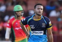 বল-ব্যাট দুই ক্ষেত্রেই ব্যর্থ ছিলেন সাকিব। ছবি : বার্বাডোজ ট্রাইডেন্টসের টুইটার পেজ